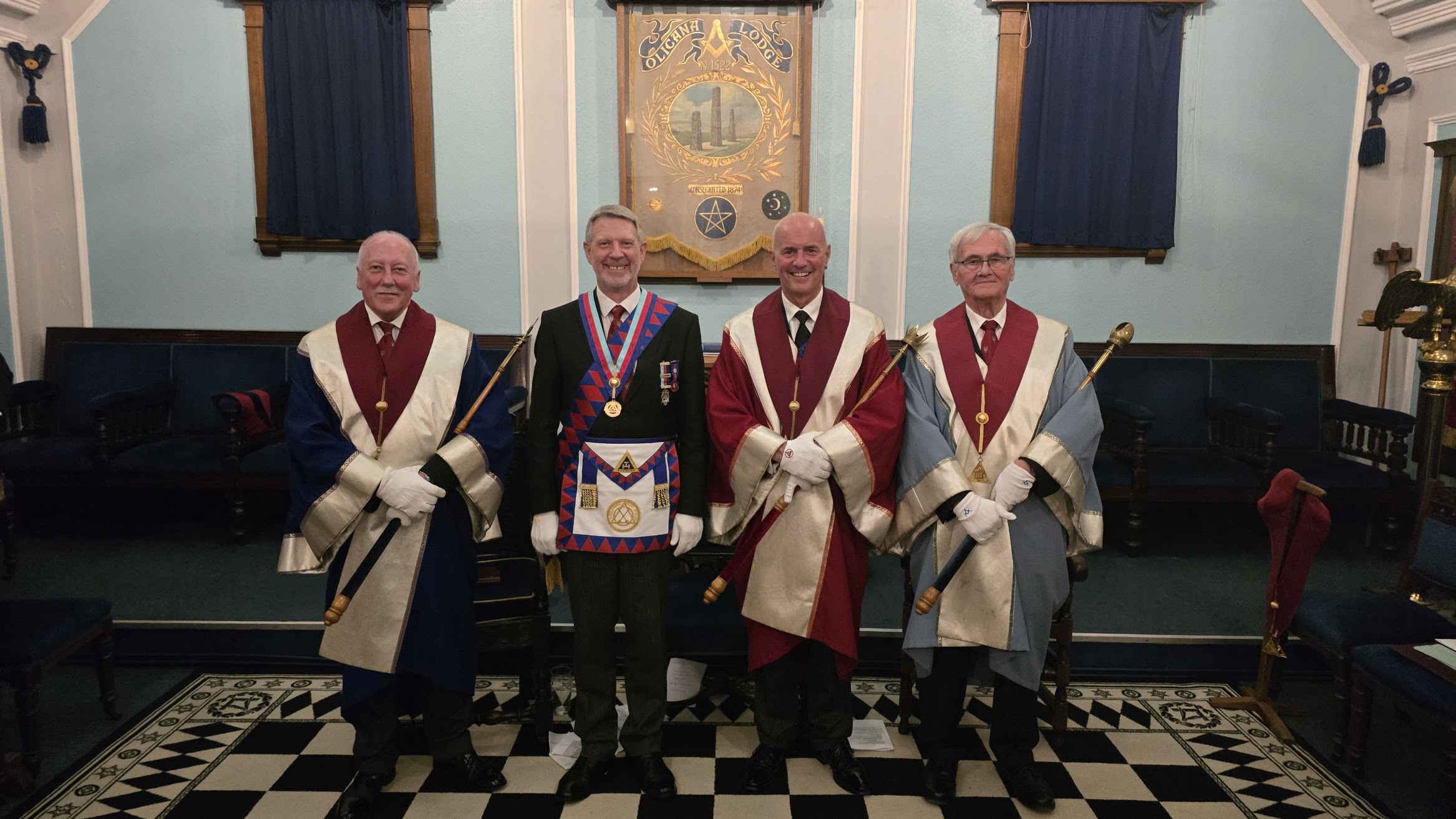 The Officers of Ben Rhydding Lodge undertook the first double Initiation Ceremony performed at Ilkley – Led by Master W.Bro Andy Hill.